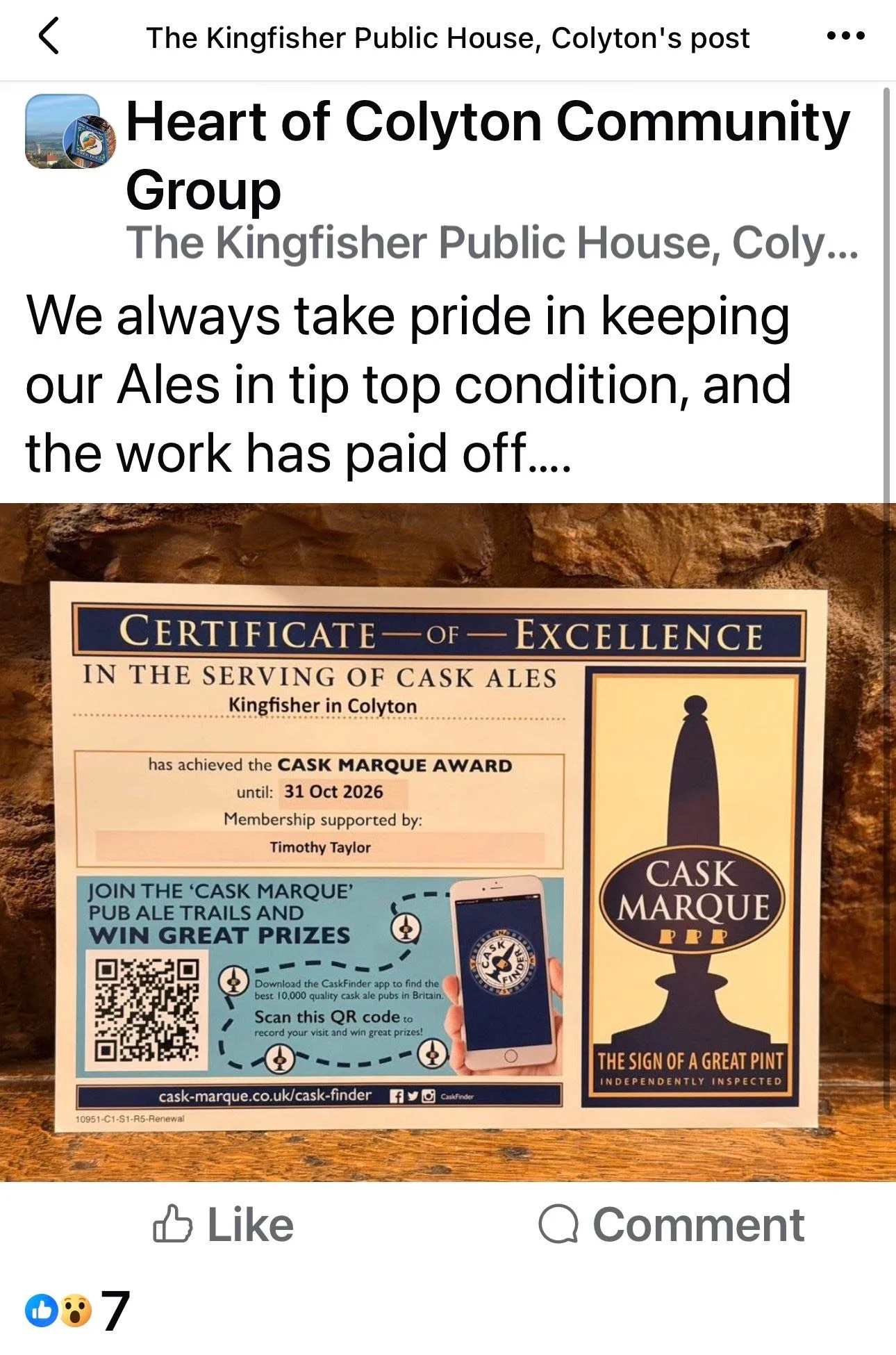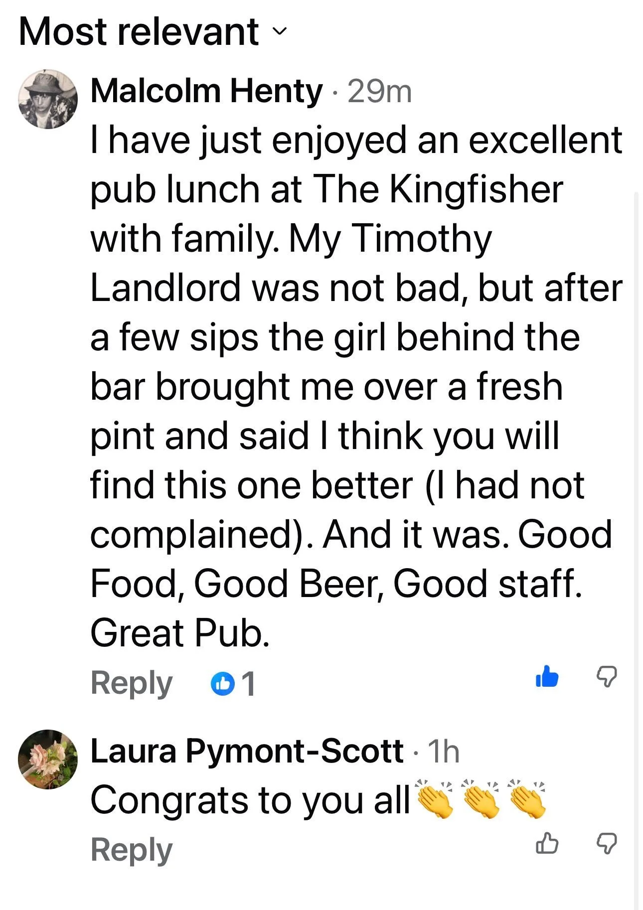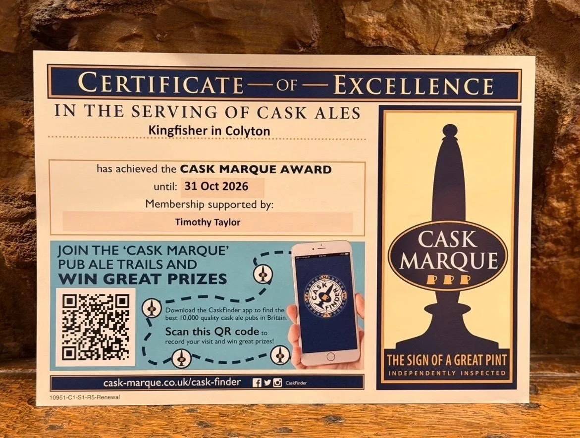 Here at the Kingfisher we pride ourselves in offering the perfect pint, this was a nice confirmation that we are doing a good job!